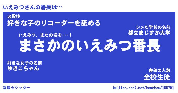 | 肩書あだ名 | 『いえみつ社長令嬢』『いえみつ大統領』 |