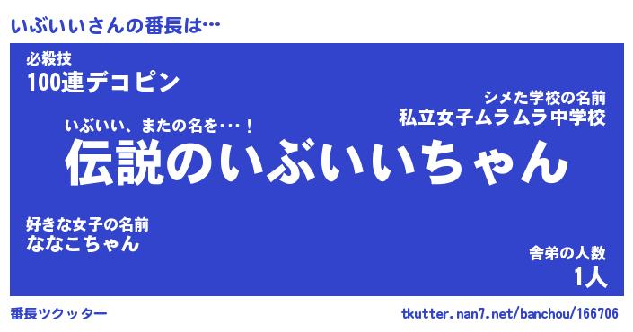 | 男性向けラノベタイトル風あだ名 | 『いぶいいの憂鬱』 |