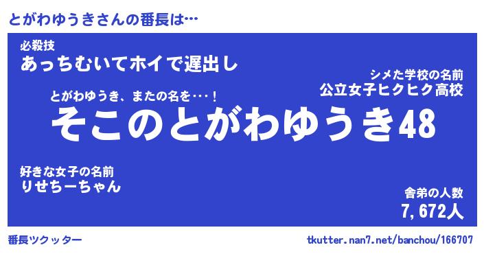 | ヘコむあだ名 | 『とがにゅー』『牛乳』『とがを』 |