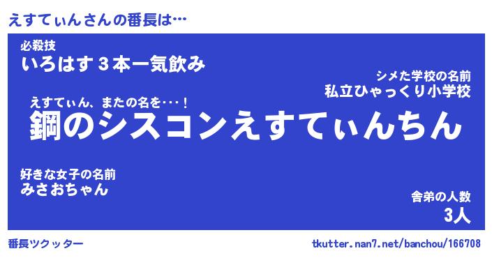 | ヒーロー風カッコイイあだ名 | 『スーパーエスティン』『魔戒騎士エス』 |