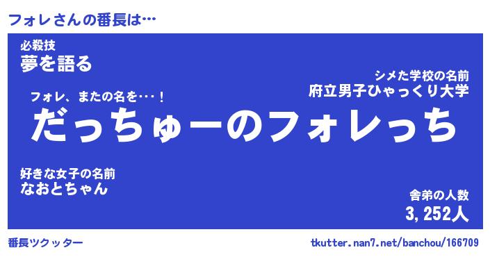 | ヒーロー風カッコイイあだ名 | 『スーパーフォレ』『ウルトラフォレマン』 |