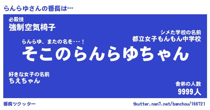 | 肩書あだ名 | 『らんらゆ御曹司』『らんらゆ総理大臣』 |