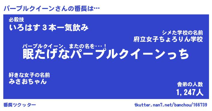 | 意味不明あだ名 | 『ペロリンパープルクイーン』 |