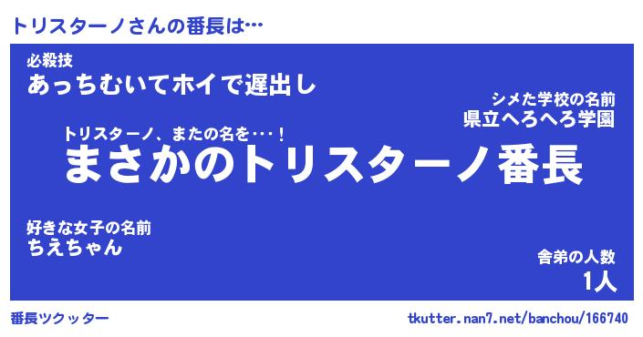 | ポケモン風あだ名 | 『トリチュウ』『トリスダネ』 |
