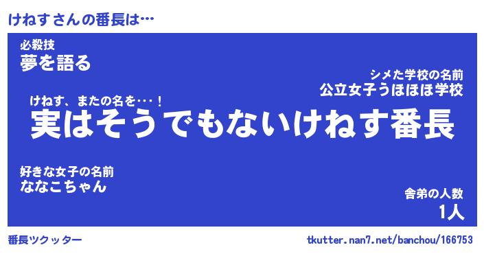 | 意味不明あだ名 | 『ペロリンけねす』『けねすフォーエバー』 |