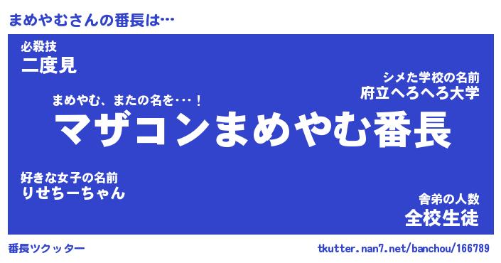 | ファンタジー風あだ名 | 『マメフェル』『エターナルマメヤムー』 |