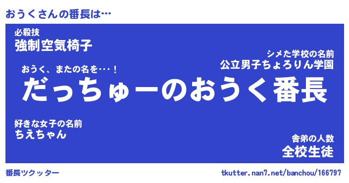 | 伝説のあだ名 | 『伝説のスナイパーおうく』 |