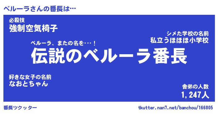 | 意味不明あだ名 | 『ペロリンベルーラ』『永久保存ベルーラ』 |