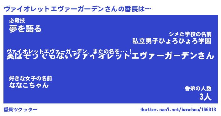 | 意味不明あだ名 | 『ペロリンヴァイオレットエヴァーガーデン』 |