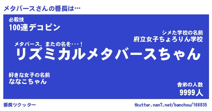 | ヘコむあだ名 | 『メタにゅー』『牛乳』『メタぷりん』 |