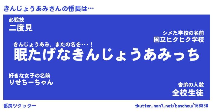 | ヒーロー風カッコイイあだ名 | 『スーパーキンジョウアミ』 |