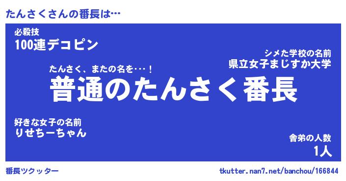 | ヒーロー風カッコイイあだ名 | 『スーパータンサク』『黄金騎士タン』 |