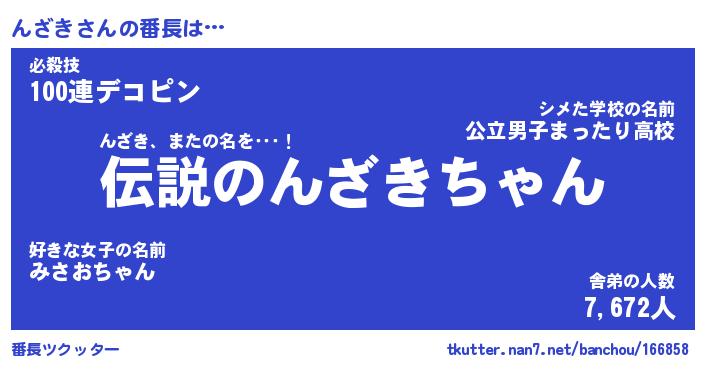 | 伝説のあだ名 | 『伝説のスナイパーんざき』 |