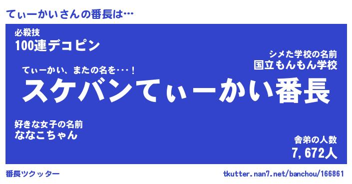 | 伝説のあだ名 | 『不死鳥のスナイパーてぃーかい』 |