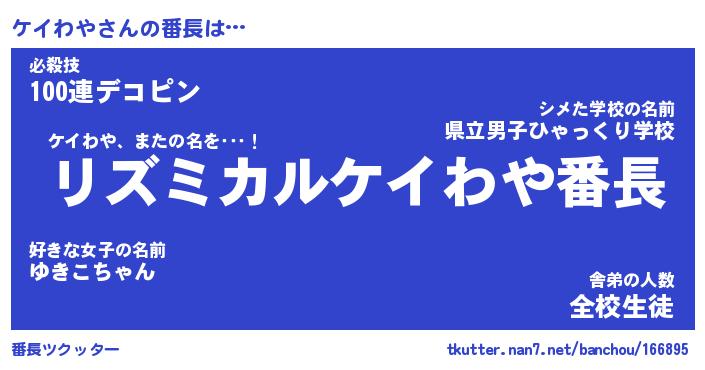 | 伝説のあだ名 | 『伝説のスナイパーケイわや』 |