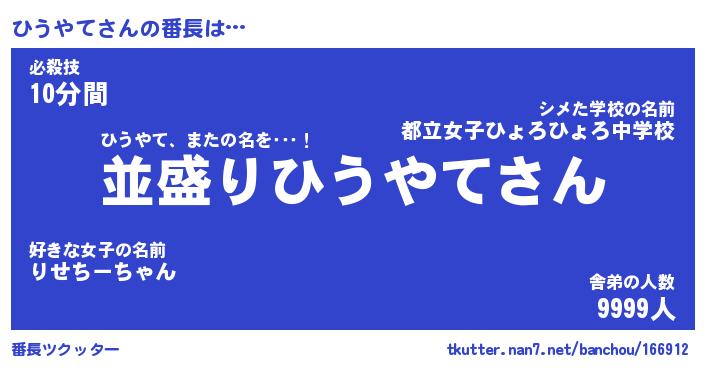 | ファンタジー風あだ名 | 『ヒウフェル』『エターナルヒウヤテー』 |