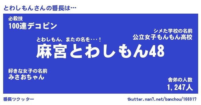 | 肩書あだ名 | 『とわしもんCEO』『とわしもん国家主席』 |