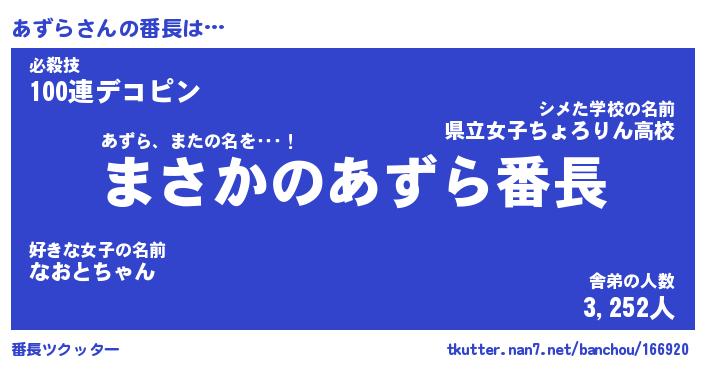 | 肩書あだ名 | 『あずら店長』『あずら大統領』 |