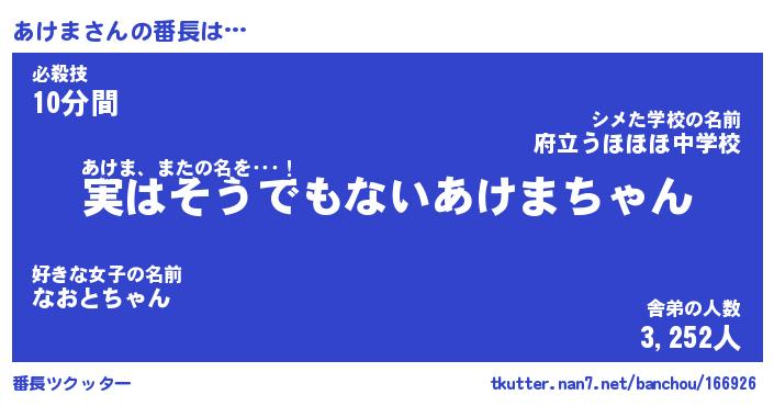 | ヒーロー風カッコイイあだ名 | 『スーパーアケマ』『ウルトラあけまマン』 |