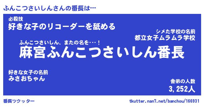 | ヘコむあだ名 | 『ふんもー』『酢こんぶ』『ふんっ子』 |