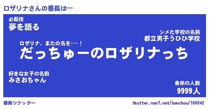 | 肩書あだ名 | 『ロザリナ社長』『ロザリナ総理大臣』 |