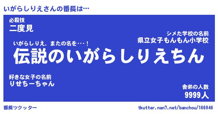 | ヒーロー風カッコイイあだ名 | 『スーパーイガラシリエ』『天弓騎士イガ』 |
