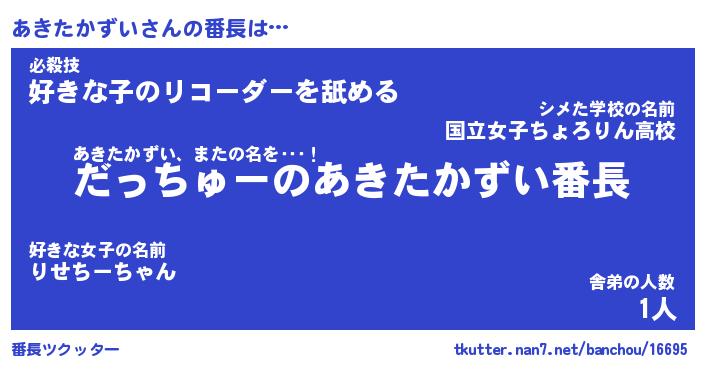 | 肩書あだ名 | 『あきたかずいCEO』『あきたかずい班長』 |