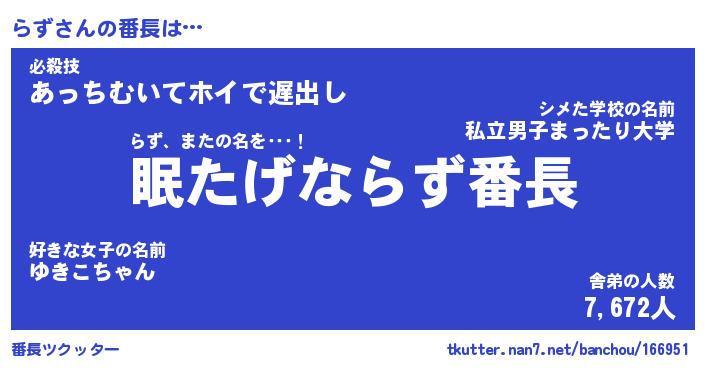 | ピコ太郎風あだ名 | 『ラコ八郎』『ピラ一郎』『ラズ十郎』 |