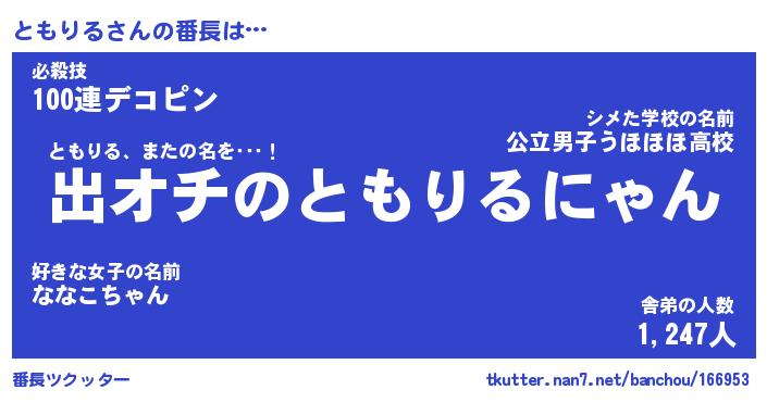 | 意味不明あだ名 | 『ペロリンともりる』『永久保存ともりる』 |