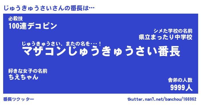 | 2回繰り返すあだ名 | 『じゅじゅ』『じじゅゅ』『こつこつ』 |