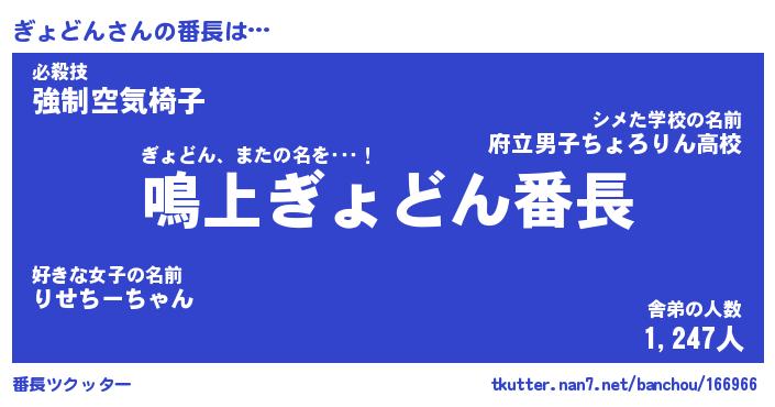 | 肩書あだ名 | 『ぎょどん店長』『ぎょどん総理大臣』 |