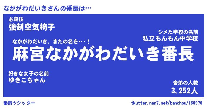 | 伝説のあだ名 | 『不死鳥のスナイパーなかがわだいき』 |