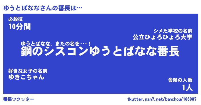 | ヒーロー風カッコイイあだ名 | 『スーパーユウトバナナ』『魔戒騎士ユウ』 |