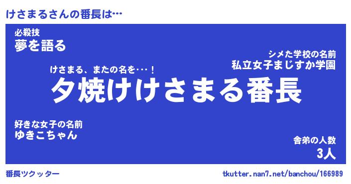 | ヒーロー風カッコイイあだ名 | 『スーパーケサマル』『炎刃騎士ケサ』 |