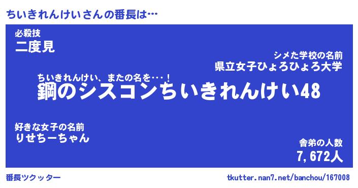 | ヒーロー風カッコイイあだ名 | 『スーパーチイキレンケイ』 |