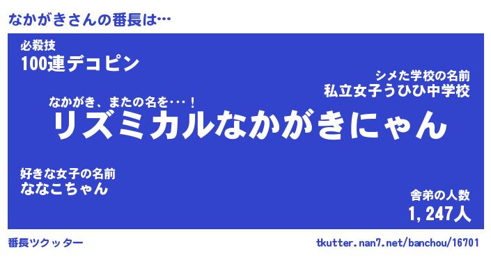 | ヒーロー風カッコイイあだ名 | 『スーパーナカガキ』『黄金騎士ナカ』 |