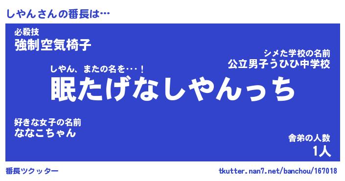 | ヒーロー風カッコイイあだ名 | 『スーパーシヤン』『ウルトラしやんマン』 |