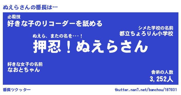 | 意味不明あだ名 | 『ペロリンぬえら』『ぬえらフォーエバー』 |