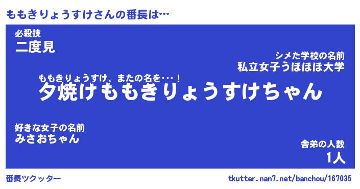 | 意味不明あだ名 | 『ペロリンももきりょうすけ』 |