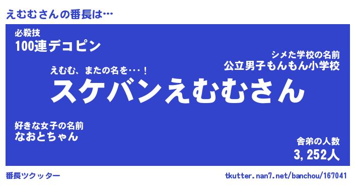 | 2回繰り返すあだ名 | 『えむえむ』『ええむむ』『ぬるぬる』 |