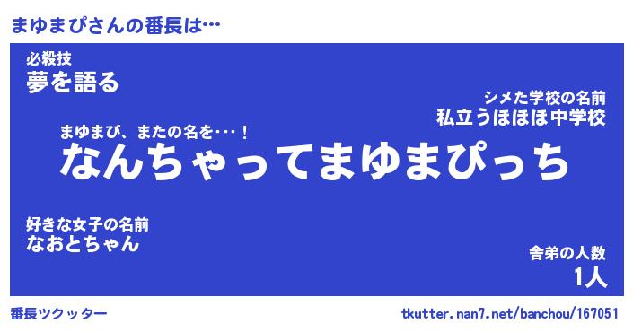 | ファンタジー風あだ名 | 『マユフェル』『エターナルマユマピー』 |