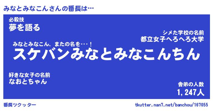 | 意味不明あだ名 | 『ペロリンみなとみなこん』 |