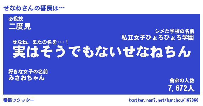 | 意味不明あだ名 | 『ペロリンせなね』『せなねフォーエバー』 |