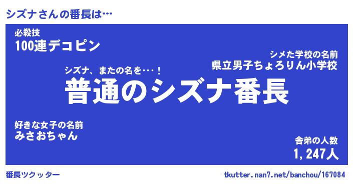 | ピコ太郎風あだ名 | 『シコ八郎』『ピシ太郎』『シズ次郎』 |