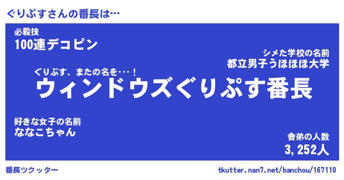 | ヘコむあだ名 | 『ぐりにゅー』『つくし』『ぐりを』 |