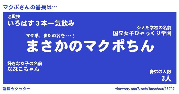 | ピコ太郎風あだ名 | 『マコ六郎』『ピマ四郎』『マク次郎』 |