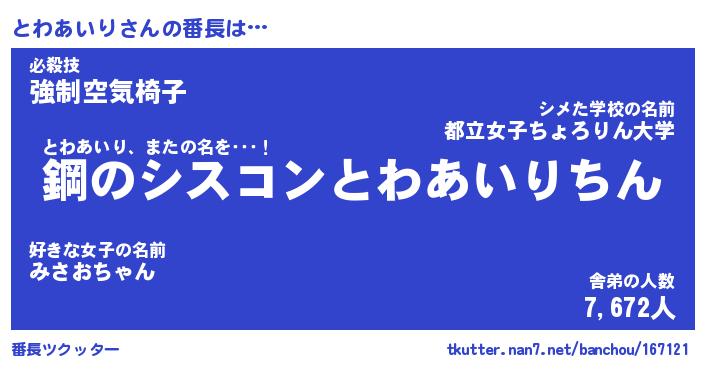 | ポケモン風あだ名 | 『トワチュウ』『トワアダネ』 |