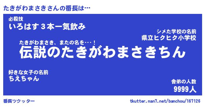 | 伝説のあだ名 | 『伝説のスナイパーたきがわまさき』 |