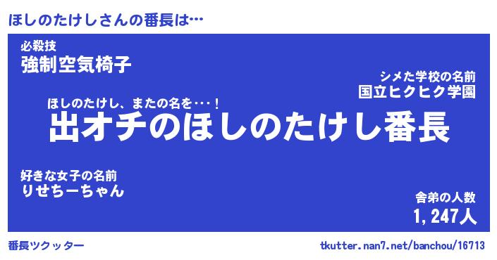 | ヒーロー風カッコイイあだ名 | 『スーパーホシノタケシ』『銀牙騎士ホシ』 |