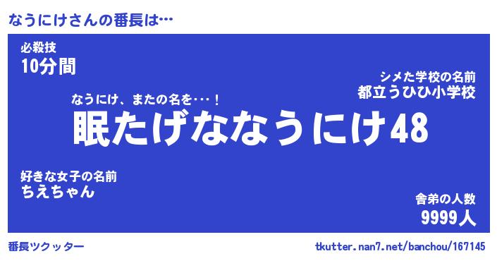 | 意味不明あだ名 | 『ペロリンなうにけ』『永久保存なうにけ』 |